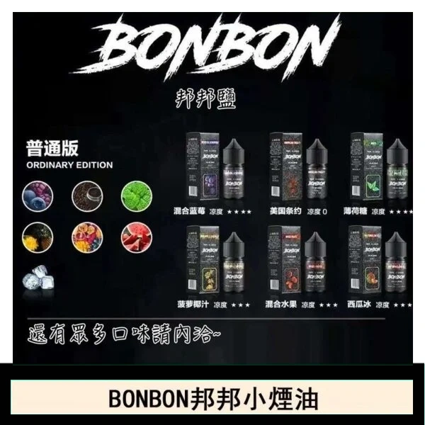 口味: 西柚 红冰 山楂 混合水果 惡魔之吻 薄荷糖 菠萝椰汁 西瓜冰 莓果廚師 混合蓝莓 法式檸檬派 今夜無飲 小芒芒 七星菸草薄荷 黑牌煙草 王牌煙草 曲奇煙草 黑標五木煙草 小綠人