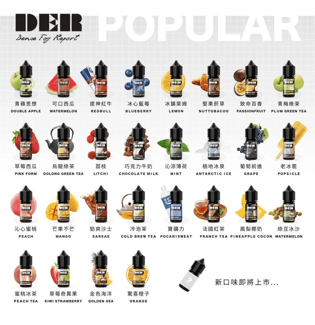 【小煙油】DER 系列 30ml #3.0% 現貨口味: 梅子綠茶 水蜜桃 橙子檸檬 芒果 藍莓 西瓜 冷泡茶 寶礦力 沙士 薄荷 檸檬 冰泉 蜜桃冰茶 草莓奇異果 草莓西瓜 紅茶 烏龍綠茶 巧克力牛奶 老冰棍 蔓越莓鳳梨百香果 綠豆紅